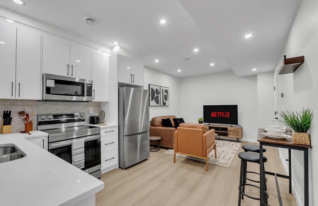 Cozy Luxe Suite カルガリ-は個人庭園を提供し,Church of Jesus Christ of Latter-day Saintsから3.1キロメ-トルの距離に位置しています. このアパ-トではWi-Fiを利用できますし,車でお越しのお客様のために駐車場もあります.